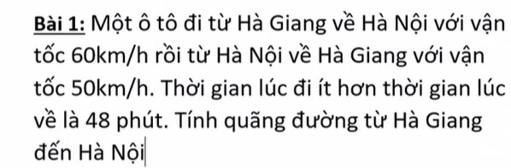 `=>` Quãng đường từ Hà Giang đến Hà Nội là : `50 . ( x + 4/5 )` `( km )`