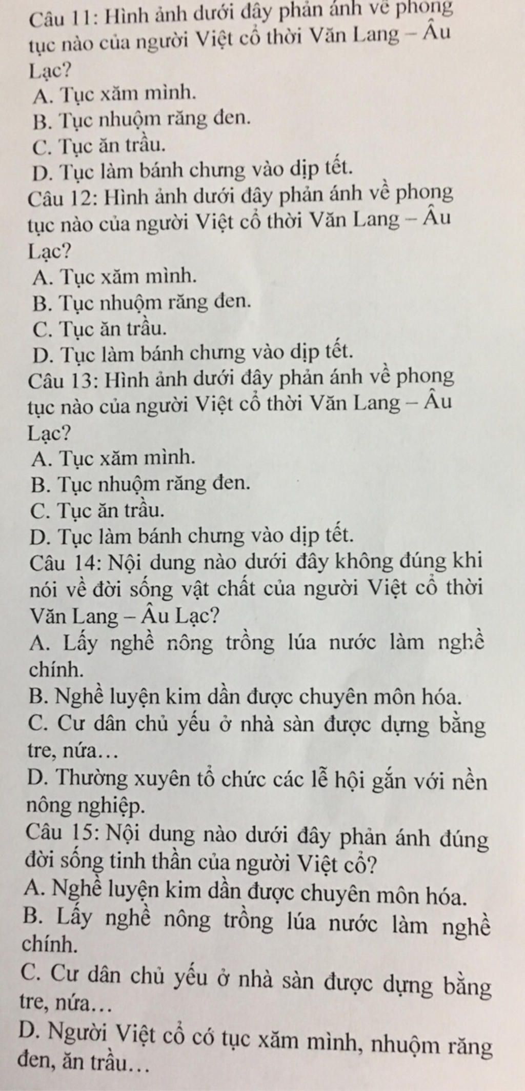 Câu 15: Nội dung nào dưới đây phản ánh đúng đời sống tinh thần của người Việt cố?