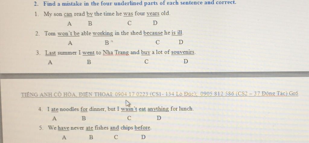 2. Find a mistake in the four underlined parts of each sentence and correct.