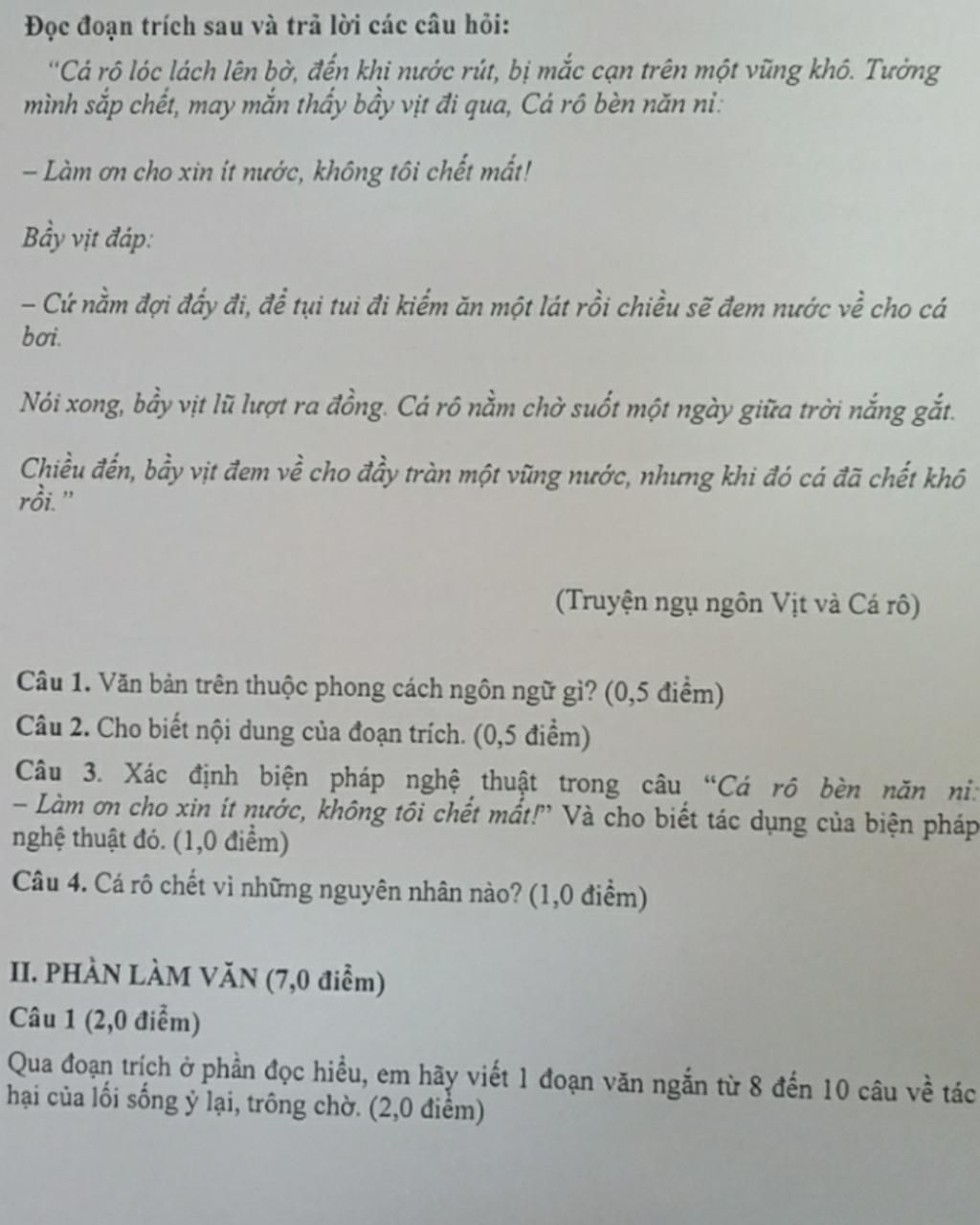 - Nội dung: Kể về chú cá rô bị mắc cạn đã nhờ đàn vịt đi qua giúp. Do không biết tự mình vượt qua khó khăn nên đã chết khô.