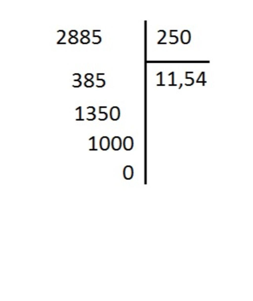 Ta chuyển dấu phẩy của 2 số 28,85 và 2,5 sang bên phải 2 chữ số rồi bỏ dấu phẩy đi xong ta thực hiện phép chia ta được: