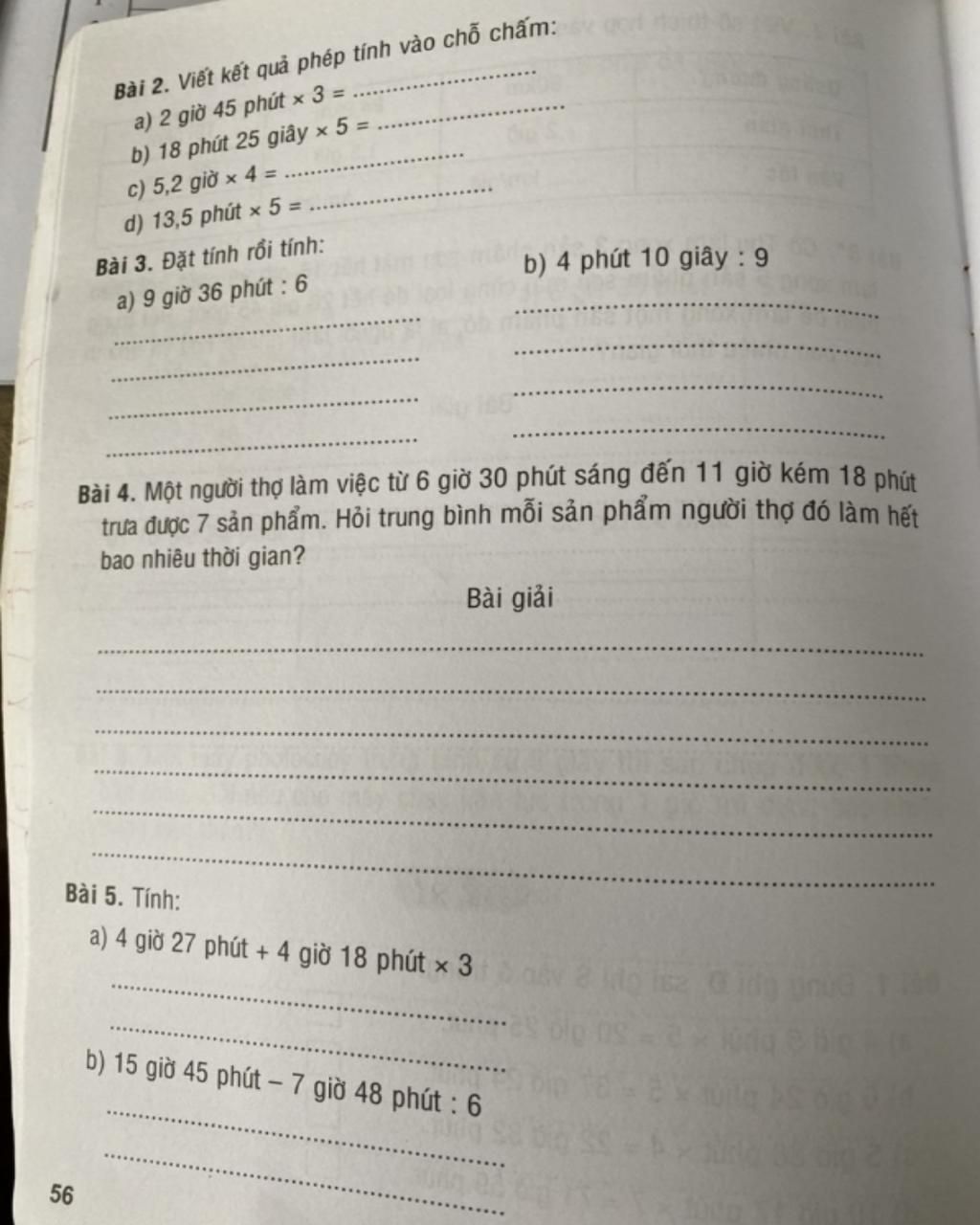 b) 18 phút 25 giây × 5 = 90 phút 125 giây = 92 phút 5 giây.