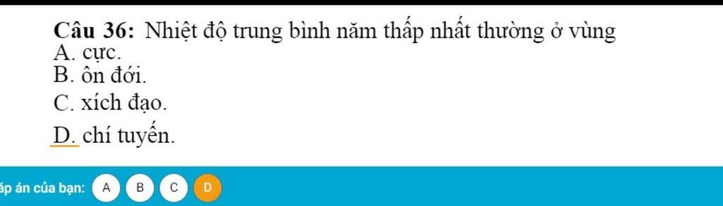 sai rồi vì nhiệt độ trung bình năm thấp nhất ở vùng cực