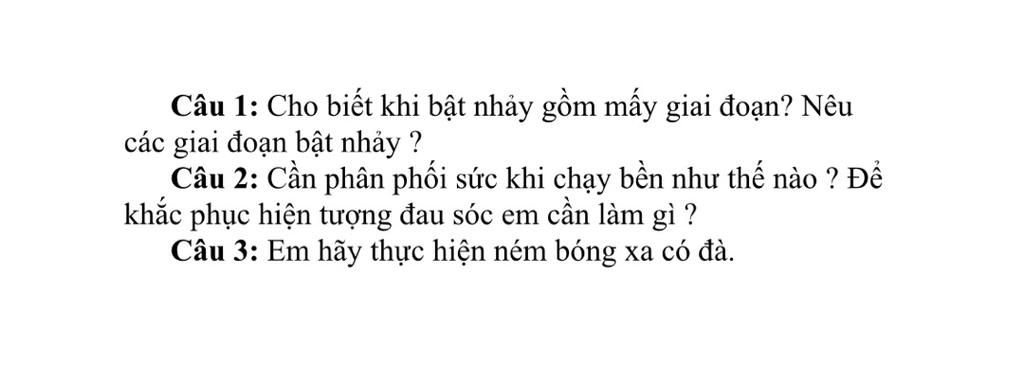 câu 1: khi bật nhảy có 3 giai đoạn :