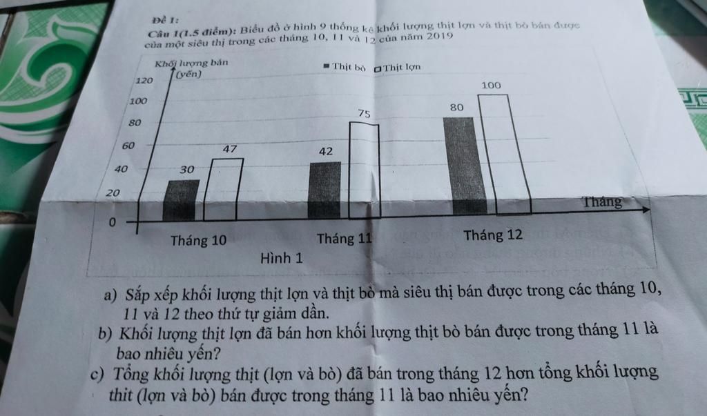 a) Thịt bò: Tháng 12, tháng 11, tháng 10