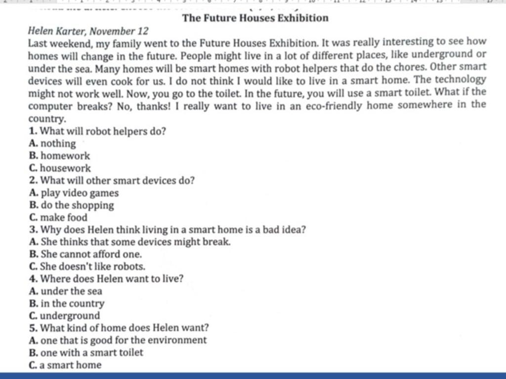 `->` D/c : Many homes will be smart homes with robot helpers that do the chores.
