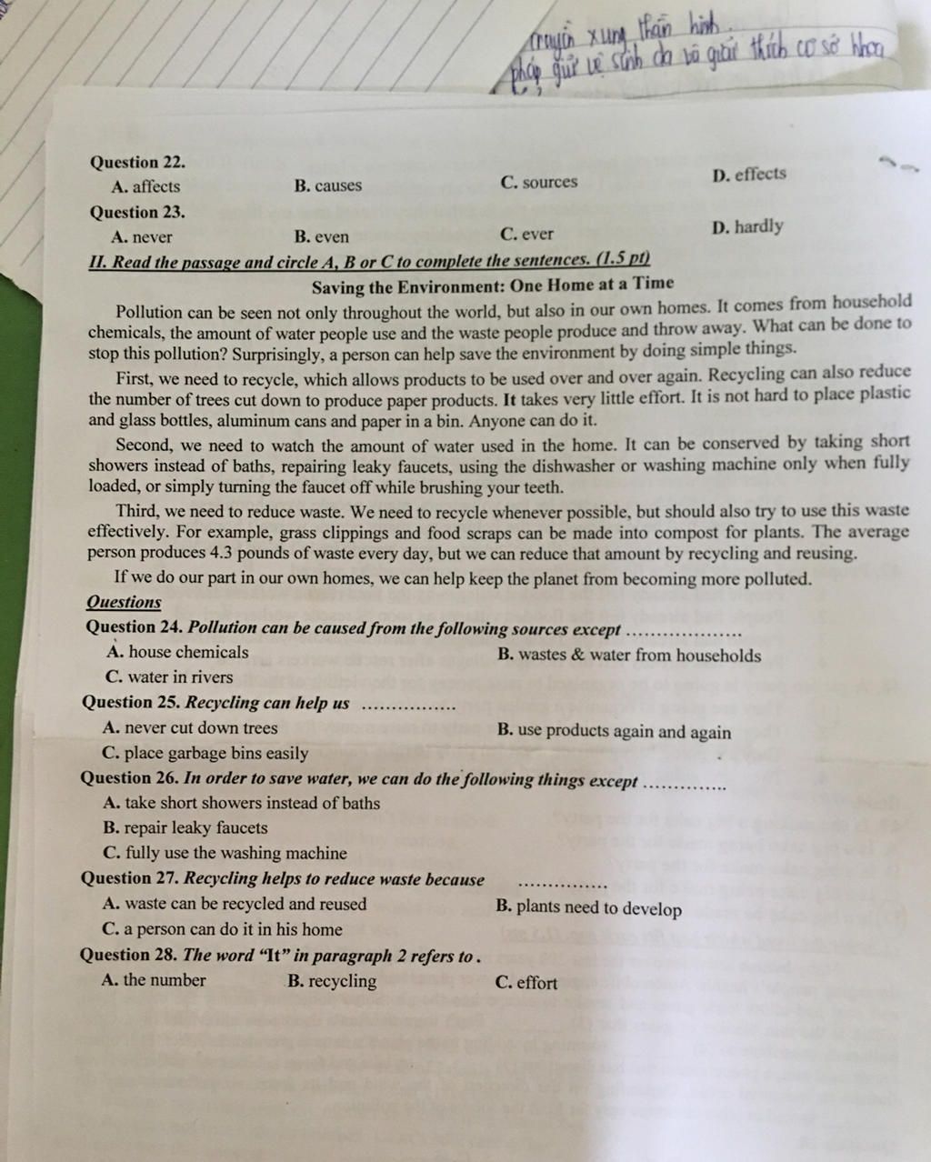 B. recycling ( vì đoạn 2 nói đến việc tái chế và công dụng của tái chế, đặc biệt, "It" đứng ở đầu câu mà câu ở trước từ "It" là nói về tái chế)