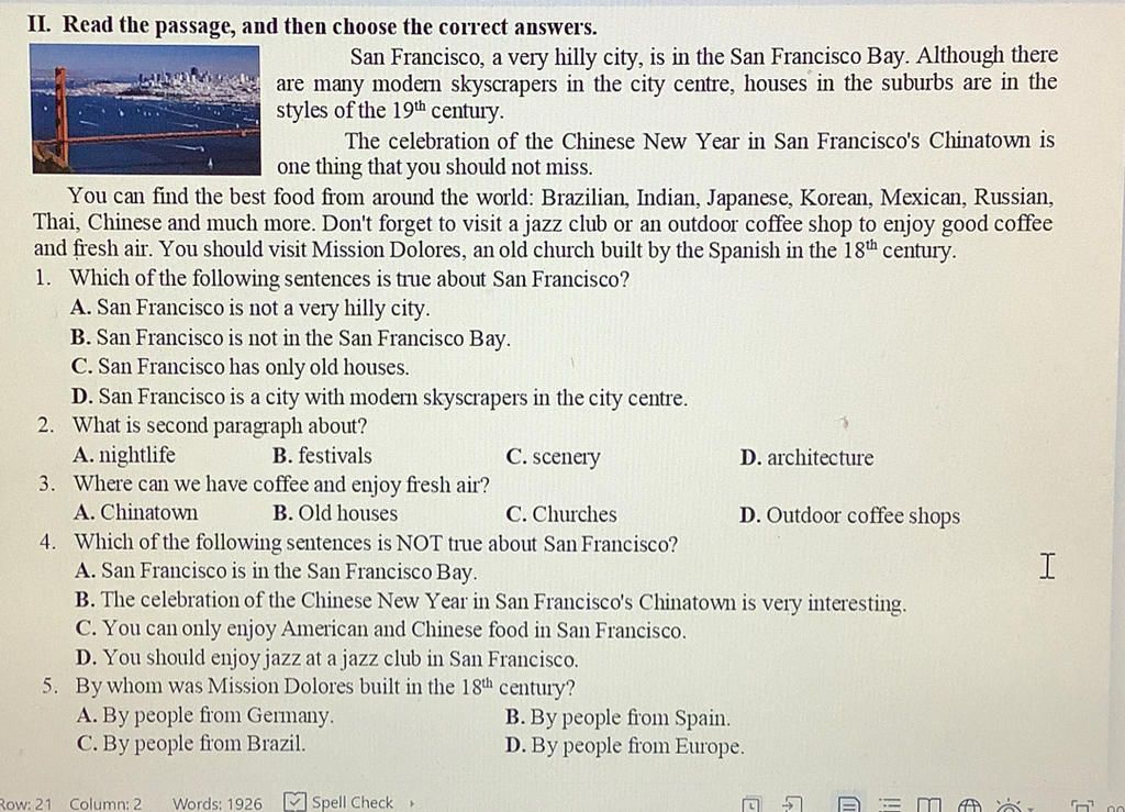 II. Read the passage, and then choose the correct answers.