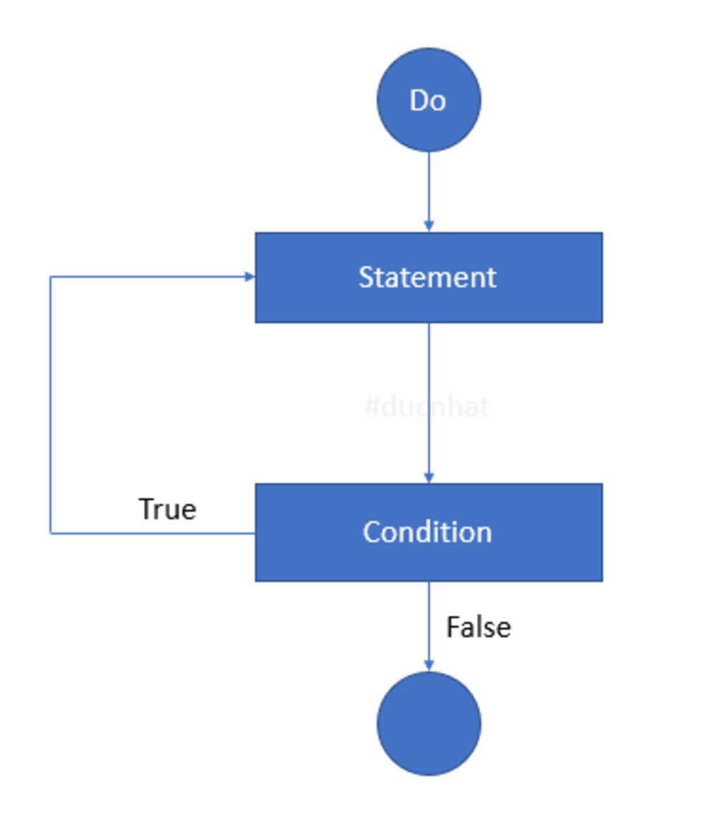 - Bước 2. Nếu điều kiện sai, câu lệnh sẽ bị bỏ qua và việc thực hiện câu lệnh lặp kết thúc. Nếu điều kiện đúng, thực hiện câu lệnh và quay lại Bước 1