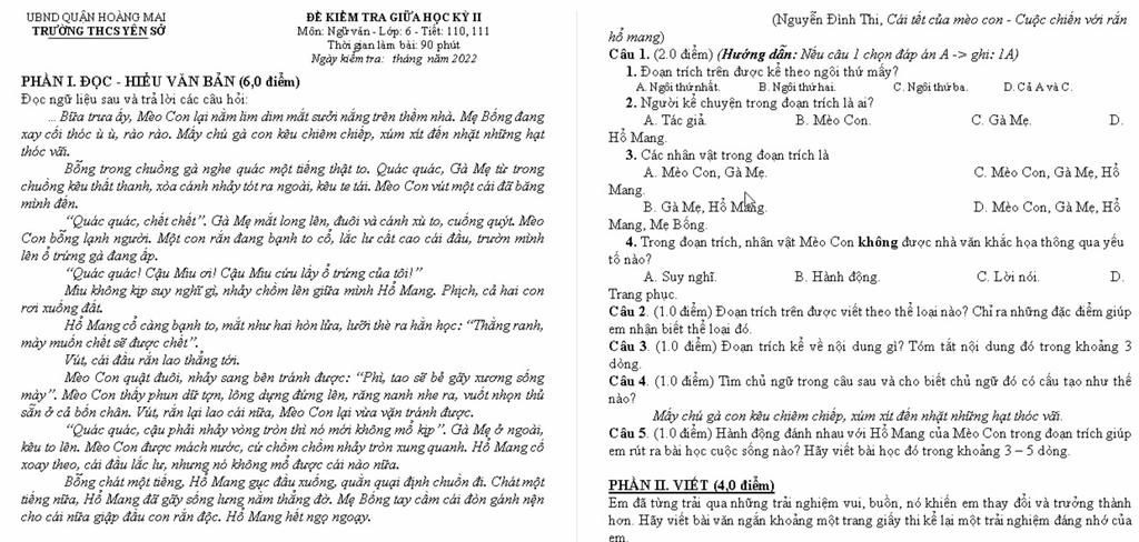 Môn: Ngữ văn - Lớp: 6 - Tiết: 110, 111