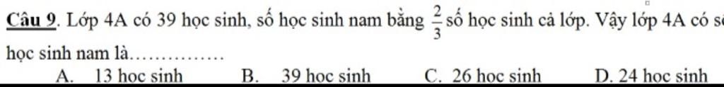 `39xx`$\dfrac{2}{3}$`=26(` học sinh `)`