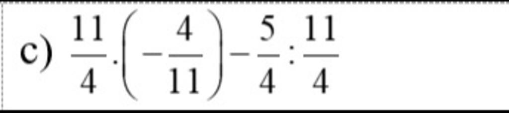$\text{$\dfrac{11}{4}$ . (-$\dfrac{4}{11}$) - $\dfrac{5}{4}$ : $\dfrac{11}{4}$}$
