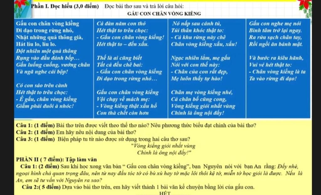 Phần I. Đoc hiểu (3,0 điểm) Đọc bài thơ sau và trả lời câu hỏi: