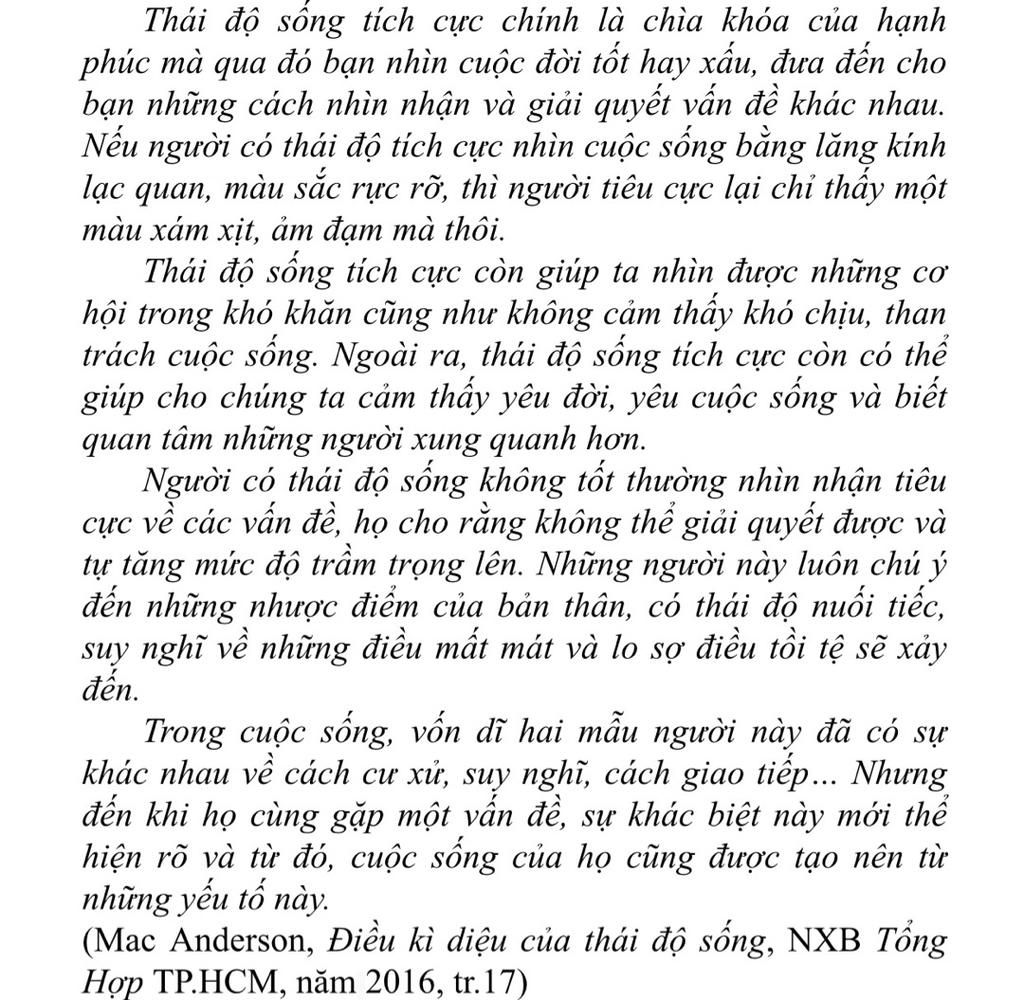 Từ văn bản trên và những hiểu biết xã hội,Em hãy viết một đoạn văn khoảng 10 dòngTrình bày suy nghĩ của em về giá trịCủa việc sở hữu một thái độ sống tích cực