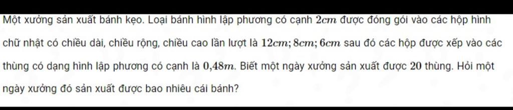 $\text{Thể tích của một hộp đựng bánh là:}$