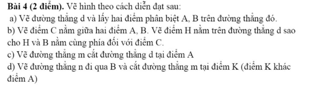 Bài 4 (2 điểm). Vẽ hình theo cách diễn đạt sau: