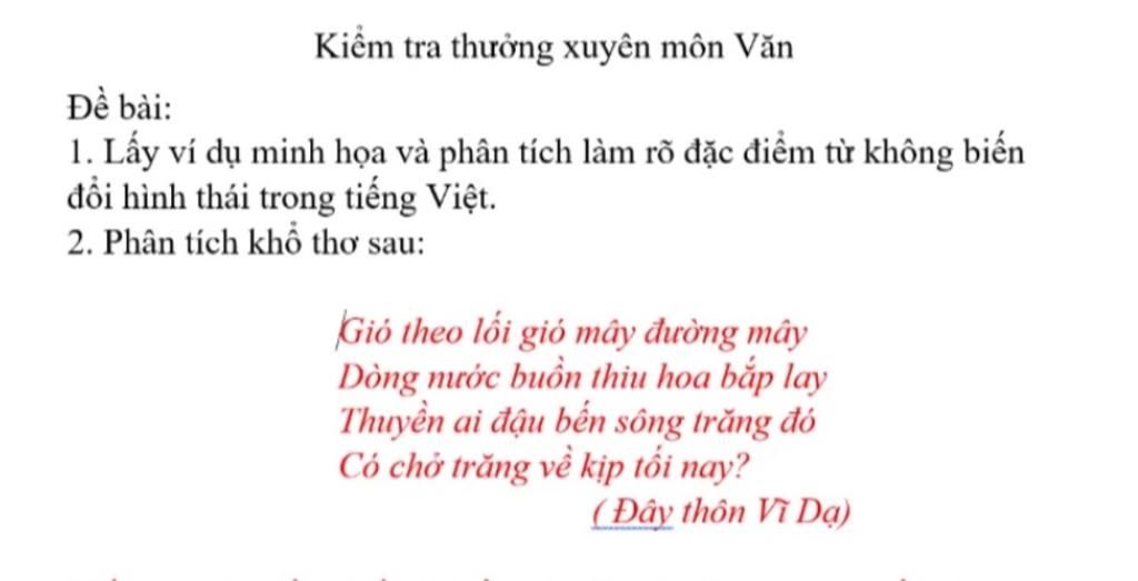 1. Lấy ví dụ minh họa và phân tích làm rõ đặc điểm từ không biến