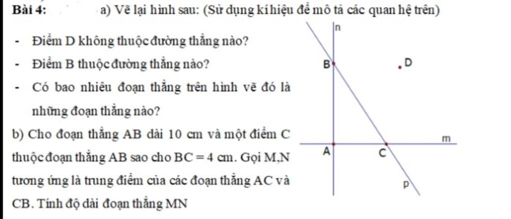 - Điểm D ∉ (n); D ∉ (m); D ∉ (p)