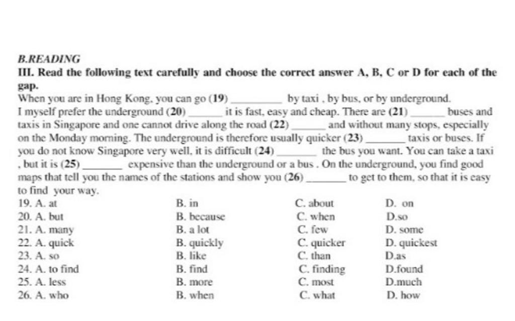 `-` Các đáp án còn lại không đúng ngữ pháp và không hợp về mặt nghĩa