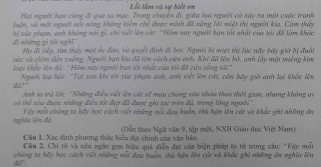 $-$ Ẩn dụ ở chỗ : " Viết lên cát, khắc lên đá".