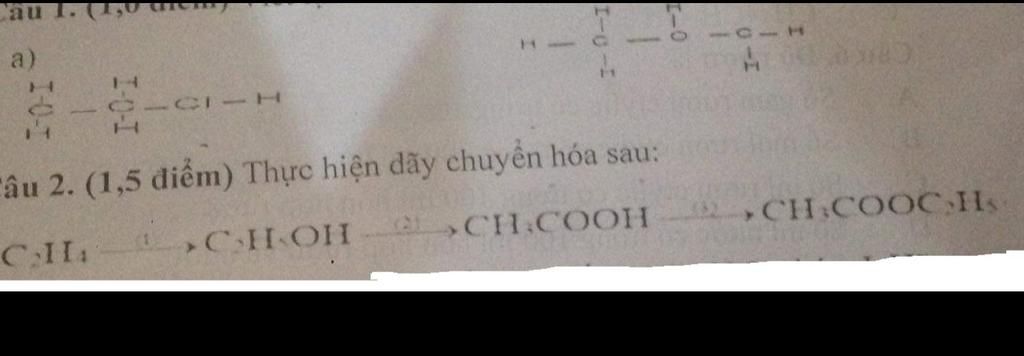 1) $C_2H_4+H_2O$ $\xrightarrow{\text{Axit}}$ $C_2H_5OH$
