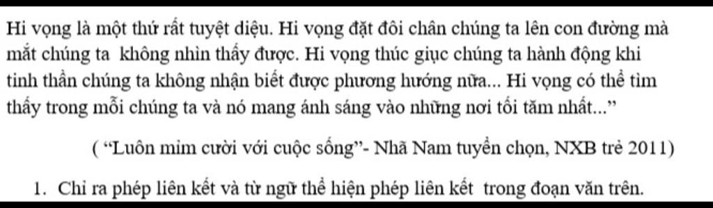 Hi vọng là một thứ rất tuyệt diệu. Hi vọng đặt đôi chân chúng ta lên con đường mà