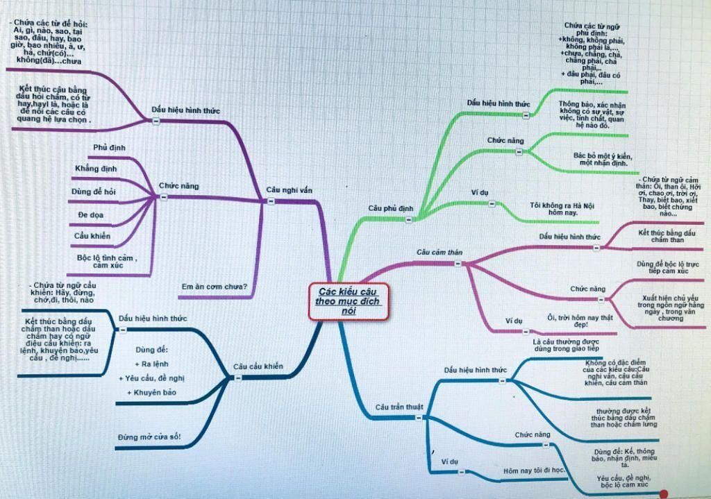hệ thống kiến thức về kiểu cáu chia theo mục đích nói bằng sơ đồ tư duy