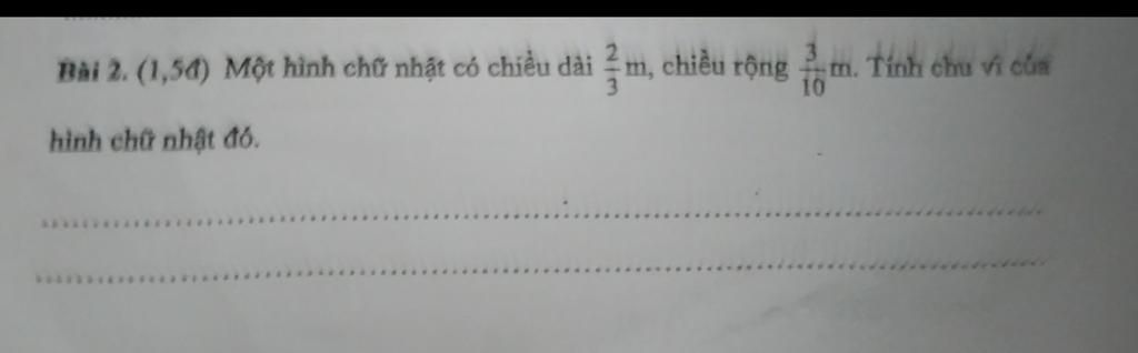 ($\dfrac{2}{3}$ + $\dfrac{3}{10}$ ) x 2 = $\dfrac{29}{15}$ ( m)