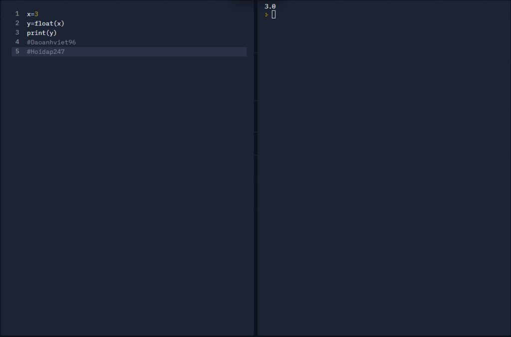 y=float(x) `=>` y mang giá trị x kiểu số thực