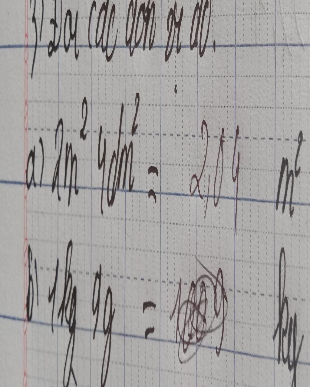 `b)` Vì `1g` `=` `0,001kg` nên `9g` `=` `0,009kg` và :