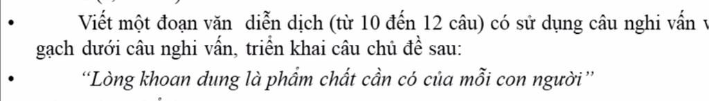 Lòng khoan dung là một trong số những đức tính tốt đẹp, là biểu hiện của lối sống đẹp, vị tha, vì người khác. Từ xưa đến nay, đây cũng là một trong những phẩm chất tốt đẹp của dân tộc ta, và hiện nay, nó cũng được phát huy qua những hành động cụ thể, thiết thực như sẵn sàng bỏ qua lỗi lầm cho người khác khi họ gây ra những tổn thương, mất mát,... Đó là những người mẹ vĩ đại giàu lòng vị tha trước những sai lầm, đó là những thầy cô giáo truyền đạt kiến thức nhưng đồng thời cũng rèn luyện phẩm chất, năng lực cho học sinh,... Chính sự vị tha, tha thứ cho những lỗi lầm của người khác sẽ khiến mối quan hệ giữa người với người trở nên tốt đẹp hơn. Bởi khi mở rộng lòng mình chấp nhận những lời xin lỗi, biết thấu hiểu cho những sai lầm của người khác, con người sẽ xóa nhòa ranh giới của sự thù hận, ghét bỏ, quên đi những mất mát, thiệt thòi của bản thân.