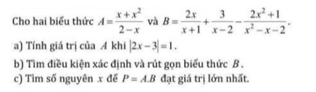 c) Tìm số nguyên x để P= A.B đạt giá trị lớn nhất.