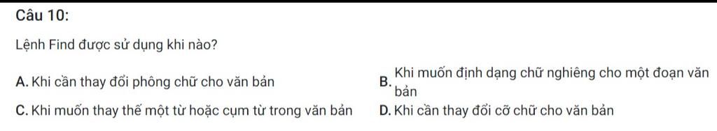 Câu 10: Lệnh Find đc sử dụng khi: