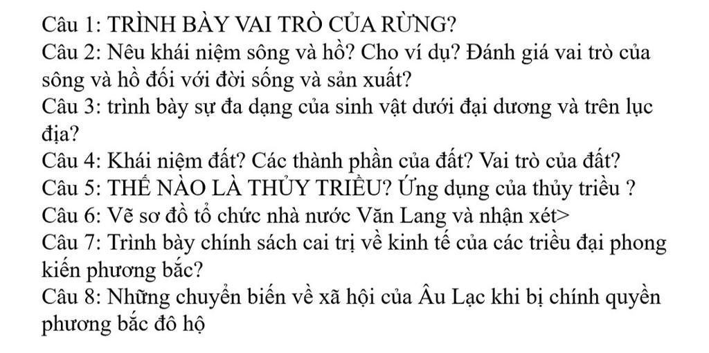 Cau 1 : - Vai trò của rừng :
