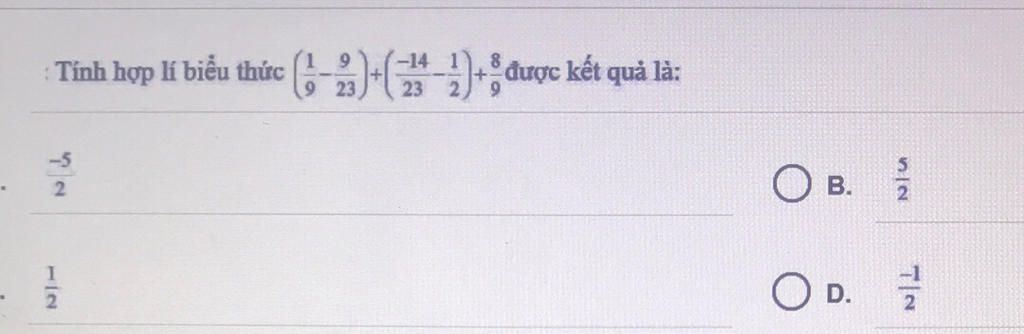 `= 1/9 - 9/23 - 14/23 - 1/2 + 8/9`