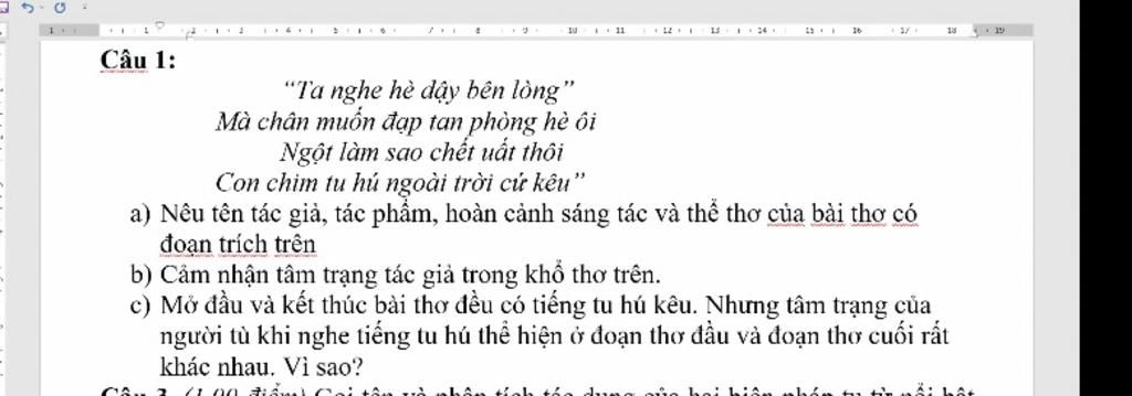 c, Câu thơ đầu và câu thơ cuối bài thơ Khi con tu hú đều có tiếng chim tu hú kêu, nhưng tâm trạng của tác giả ở mỗi lần mỗi khác bởi;