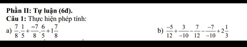 `a) 7/8 . 1/5 + (-7)/8 . 6/5 + 1 7/8`