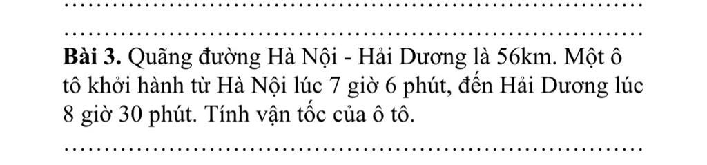 Thời gian ô tô đi từ Hà Nội `-` Hải Dương là :