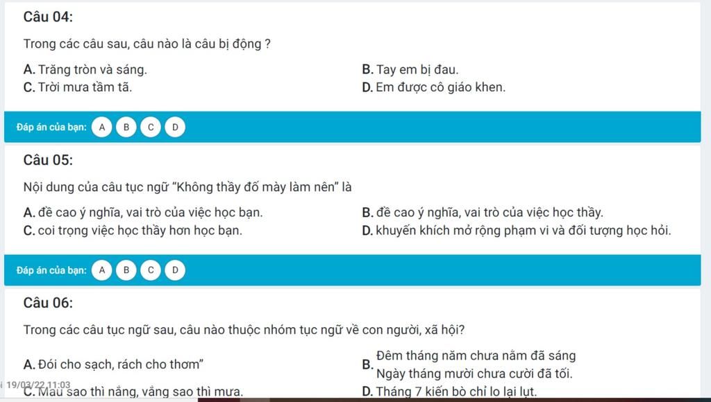 Câu5=>C. Coi trọng việc học thầy hơn bạn