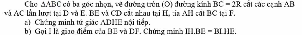 a) Chứng minh tứ giác ADHE nội tiếp.
