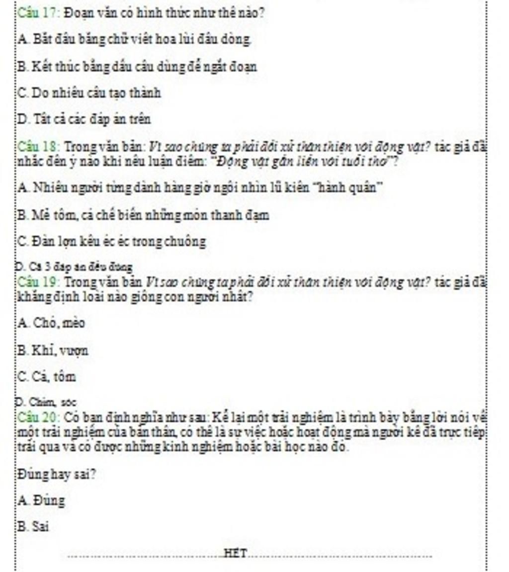 Câu 17: D. Tất cả đáp án trên