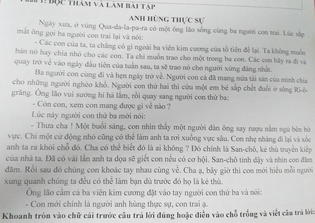 Câu 2 Vì sao người con trai thứ ba lại được người cha trao cho ba viên kim cương ?