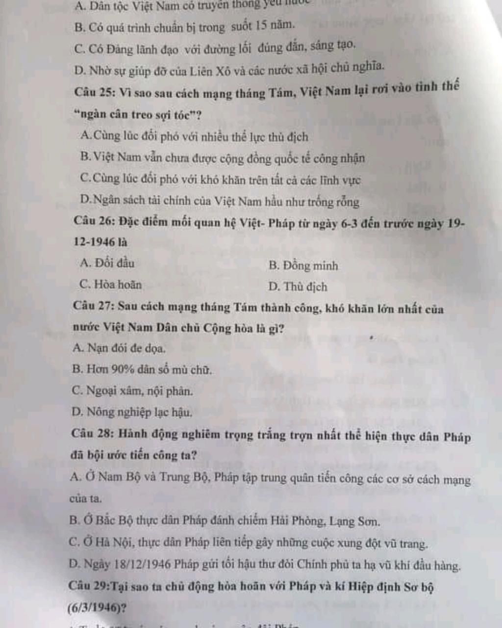 Câu 28;`->D`.Ngày `18-12-1946` Pháp gửi tối hậu thư đòi Chính phủ ta hạ vũ khí đầu hàng.