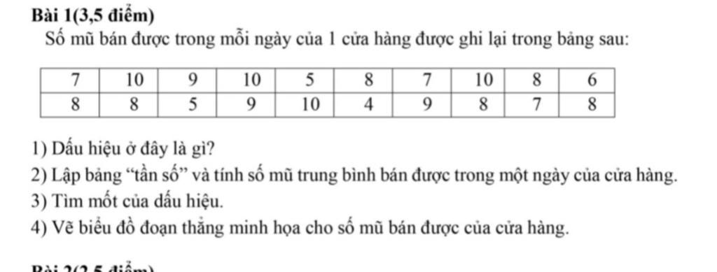 2) Lập bảng “tần số" và tính số mũ trung bình bán được trong một ngày của cửa hàng.