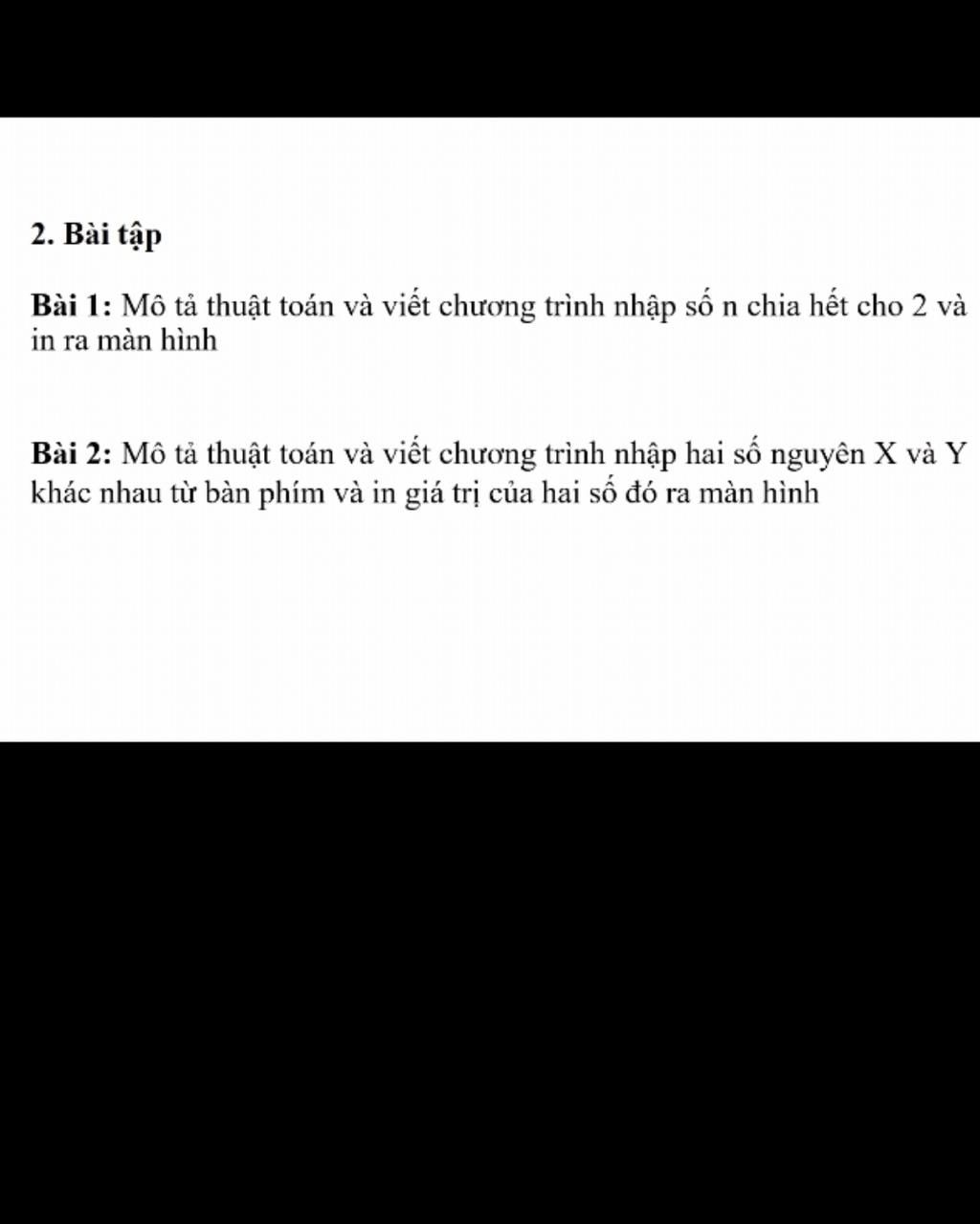 Bài 2: Mô tả thuật toán và viết chương trình nhập hai số nguyên X và Y