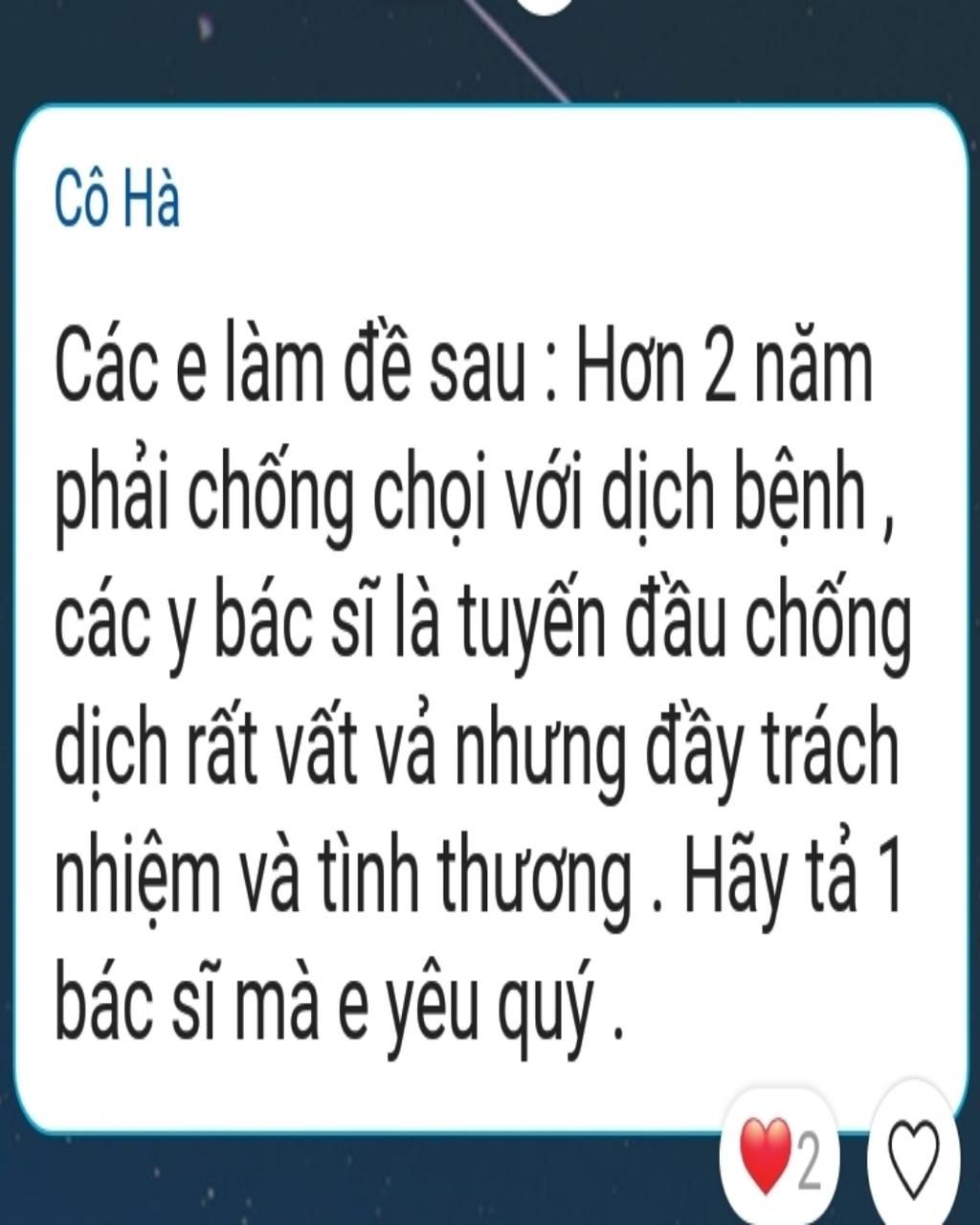 bệnh viện là nơi em ghét tới nhất! Thế nhưng sau khi nhìn thấy cảnh bác sĩ chăm sóc bệnh nhân em đã thay đổi suy nghĩ đó và có một cái nhìn khách quan hơn về bệnh viện.