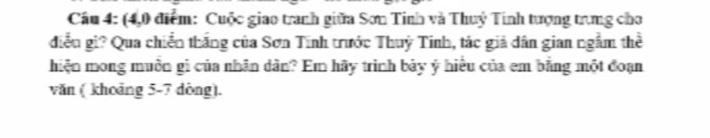 Câu 4: (4,0 điểm: Cuộc giao trach giữa Sơn Tinh và Thuỷ Tinh tuợng trng cho