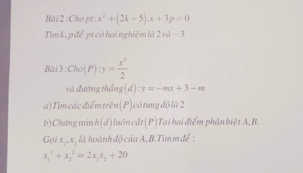 Bài 2:Cho pt:x +(2k – 5).x +3p=0