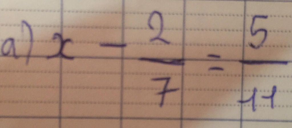 `⇒ x =` $\dfrac{5·7}{11·7}$ `+` $\dfrac{2·11}{7·11}$
