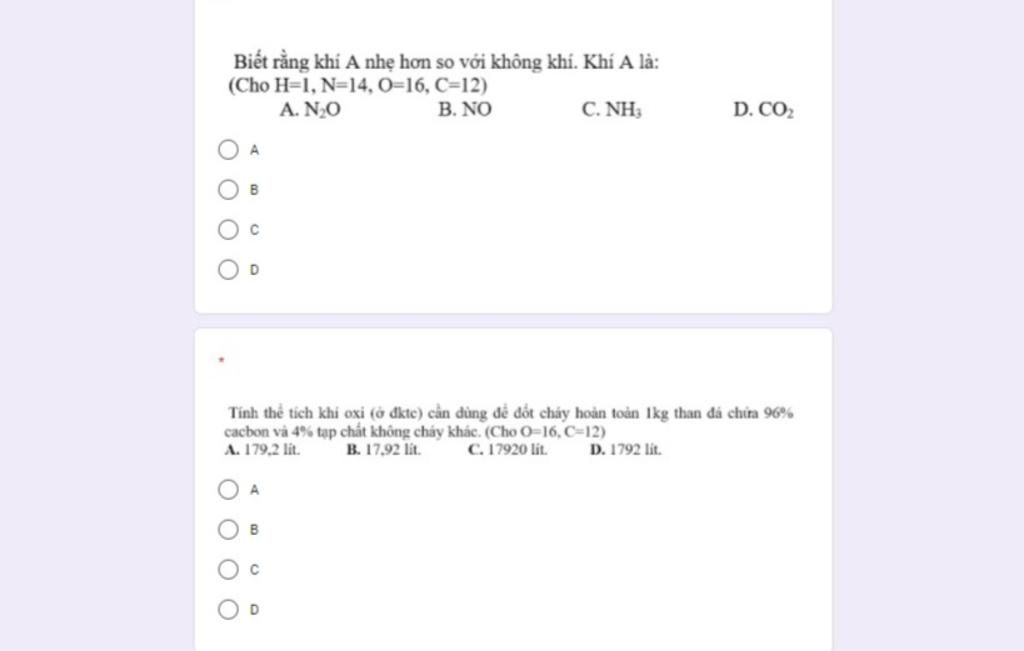 $\text{⇒ $V_{O_{2}}$=80 × 22,4= 1792 (lít)}$